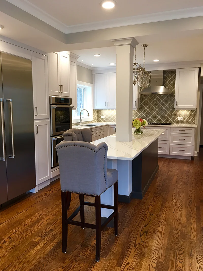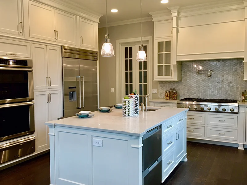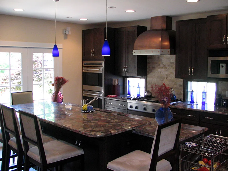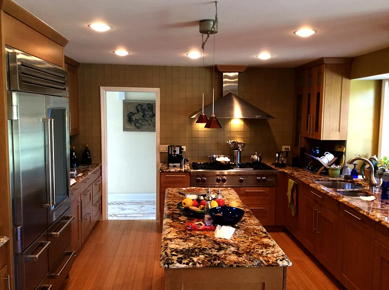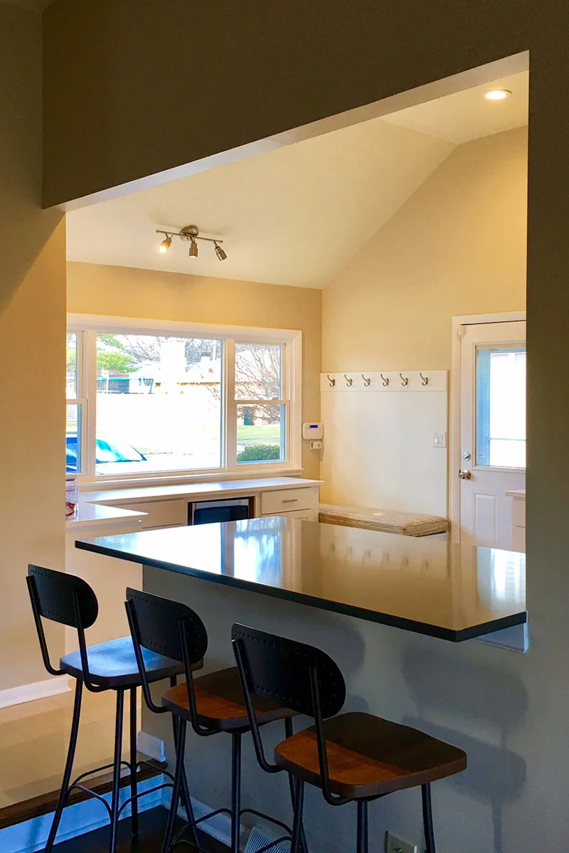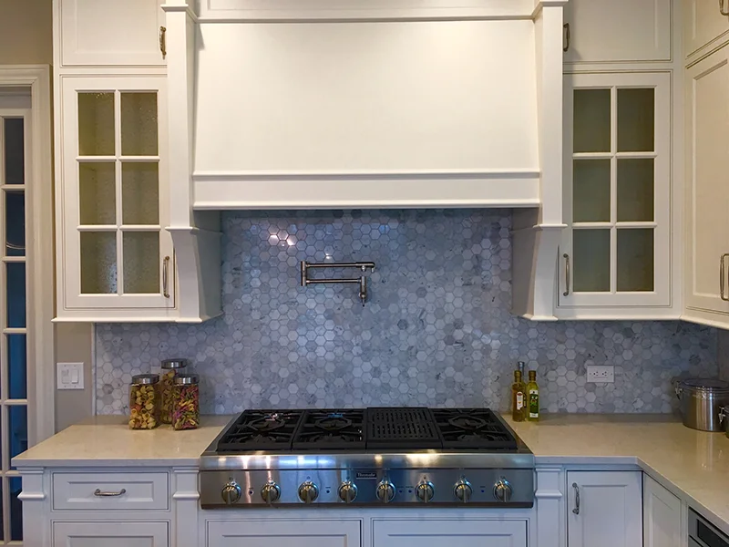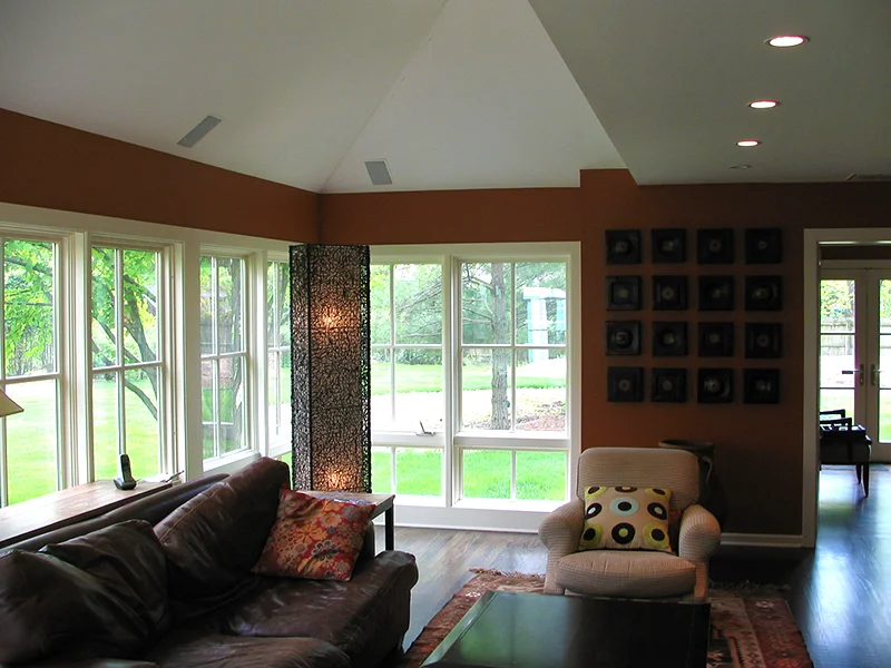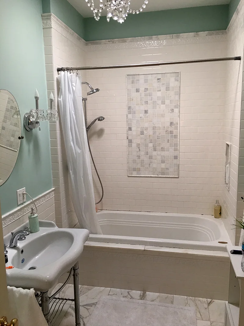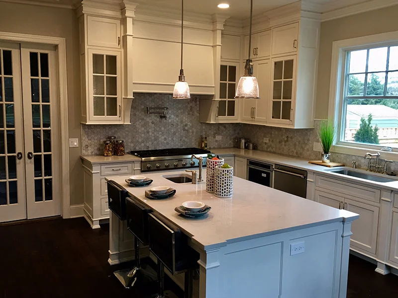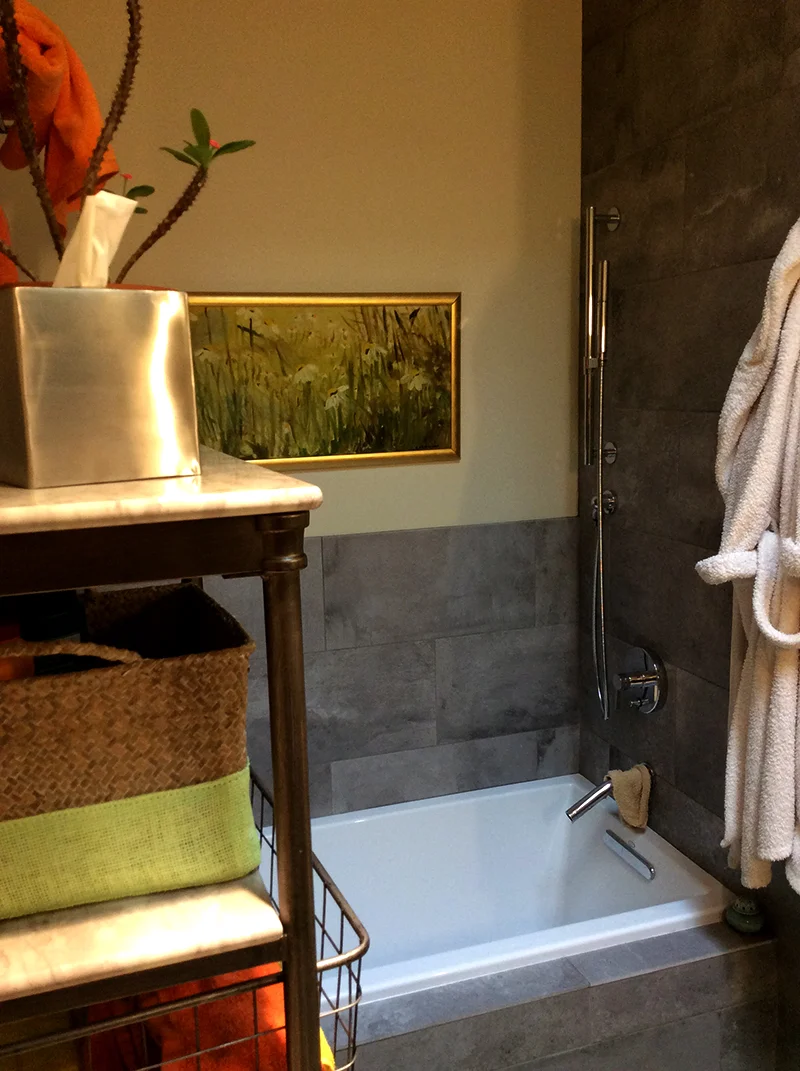 This turn-of-the-century house was brought new life by the addition of a large kitchen/potting room and master suite. Sunny tiles and the centerpiece of a La Cornefeu range make the cook’s kitchen a pleasurable work and social space. An unused front porch was revived as a three-season sunroom, with Cuban cement tiles in a lively vintage pattern. Photography by Darris Lee Harris.